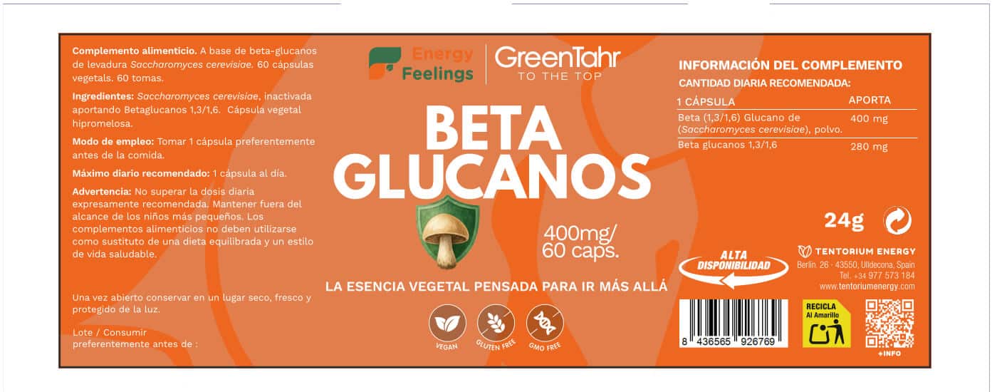 • Contiene 280 mg de beta-glucanos 1,3/1,6 por cápsula, derivados de levadura inactivada Saccharomyces cerevisiae.