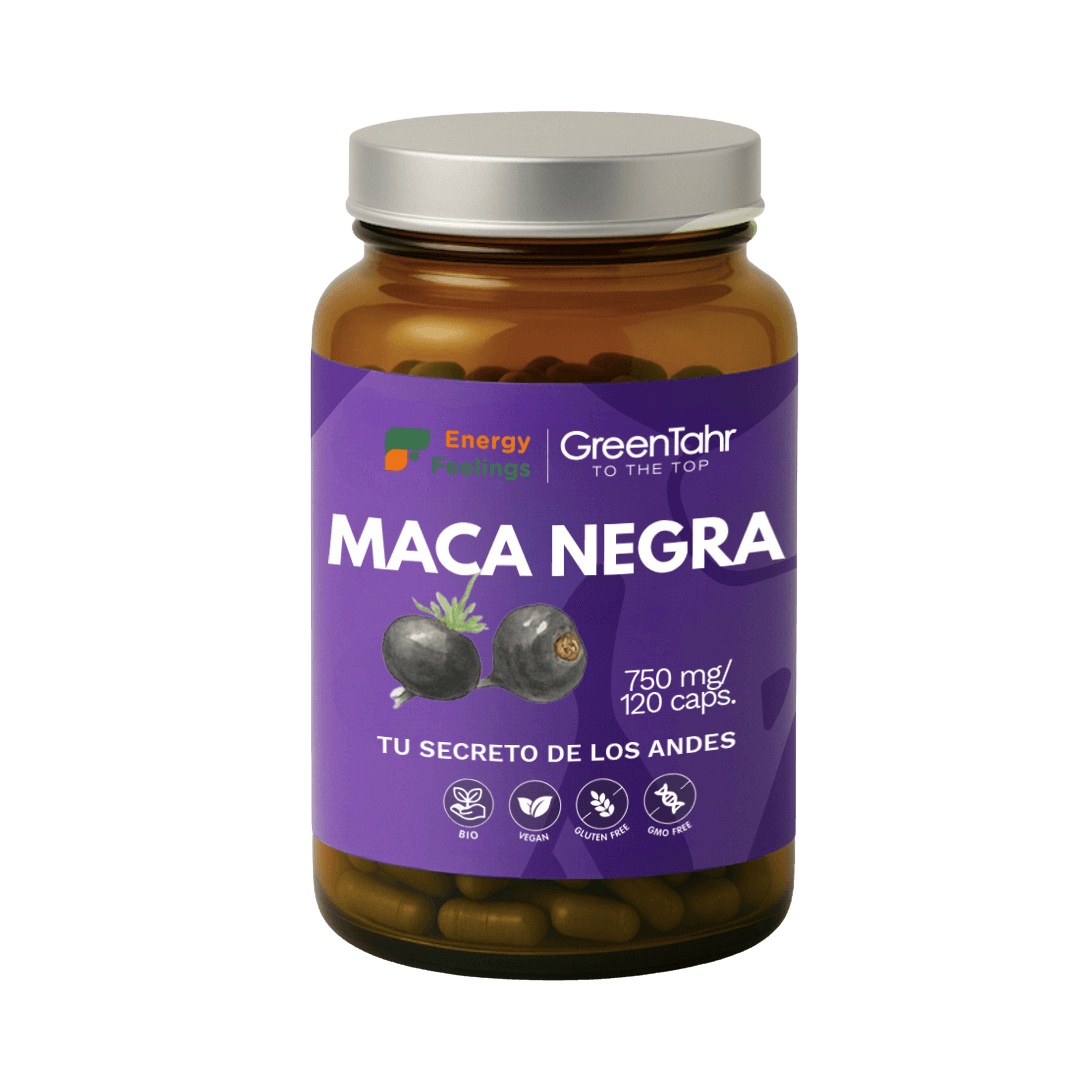 • Aporta 3.000 mg de extracto puro de maca negra andina (Lepidium meyenii) por dosis diaria, con alta concentración de compuestos naturales y fitoactivos energizantes.